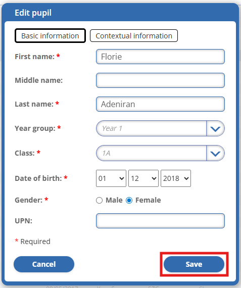 - Select the learner's record in the Pupils tab.