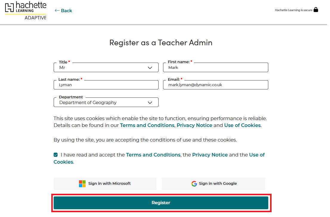 When teachers click the link, they will need to enter their details and click Register. An email will be sent to them asking them to verify their account and create a password.