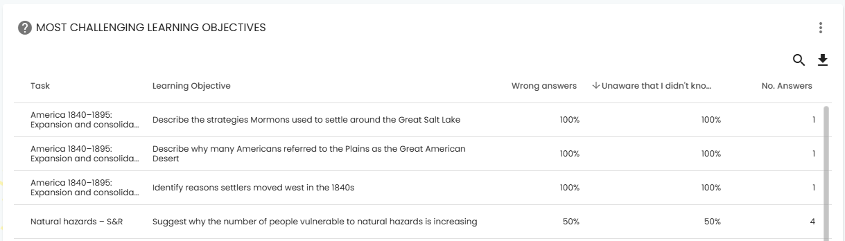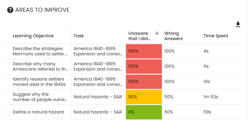 They can also see which learning objectives they found most difficult within a topic, again providing them with the areas that they need to focus on.