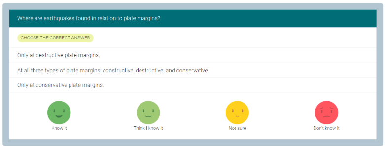- Support learners with thinking about their learning more explicitly, encouraging some to be more confident in their knowledge, and unpicking misconceptions or providing additional learning support for those learners who think they know the topic well but keep getting the answers wrong