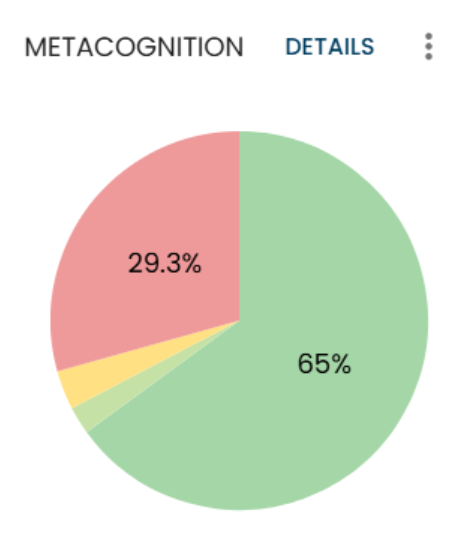 The metacognition pie chart shows a summary of metacognitive responses for the entire class, which can be seen at whole course, at module/task level or at individual learning objective level.