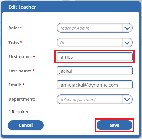 - Select the CPD admin's record in the Teachers tab.