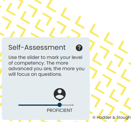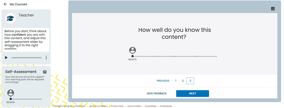 Before they start, learners think about how familiar they think they are with the topic, and adjust the self-assessment slider shown here.