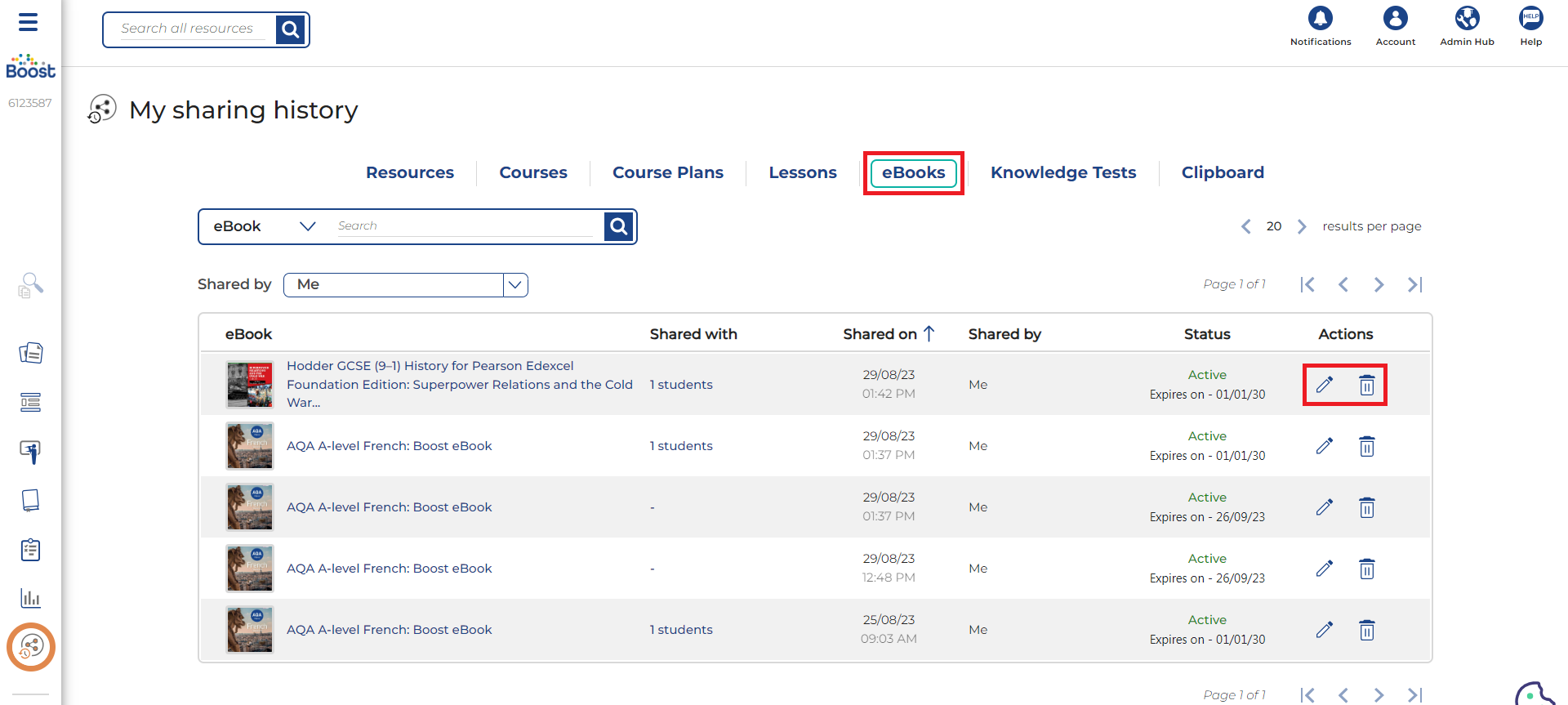 This article will show you how to review and remove any eBooks you've shared with students.