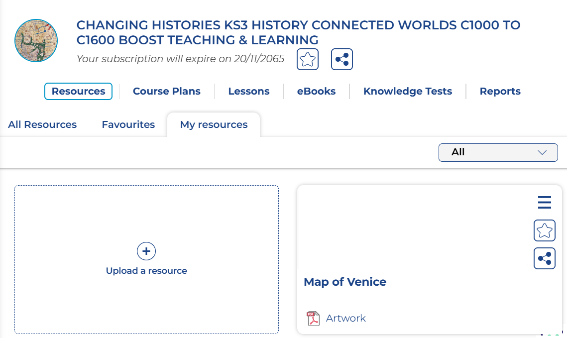 5. Your uploaded resource will now appear under 'My Resources'. You can favourite it, share it and add to lessons as is the same with any other existing resource: