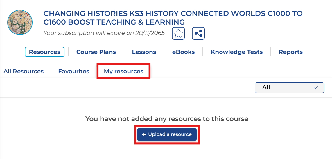 1. Select 'My Resources' under the 'Resources' tab of your course: