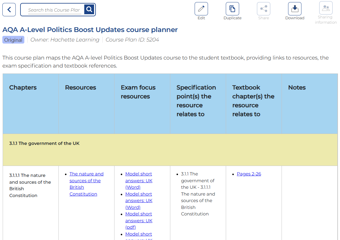 You can edit Course plans to suit your needs and share them with your colleagues.