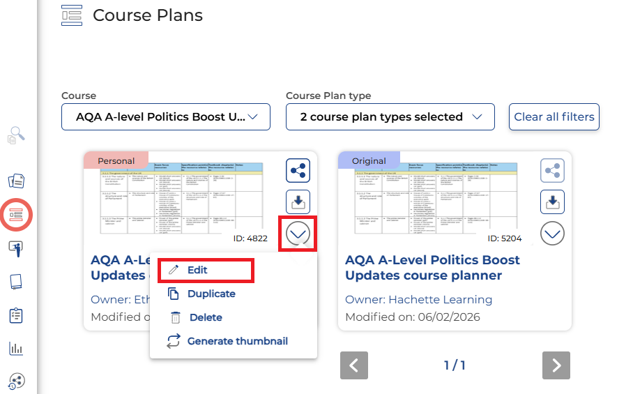 - If you edit a 'Personal' Course plan (one you've already edited), then the current version will be overwritten. If you want to keep the old version, click Duplicate to make a copy first.