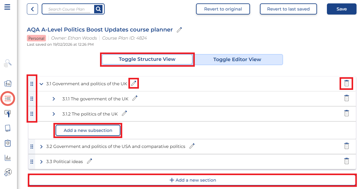 Editing a Course plan's structure