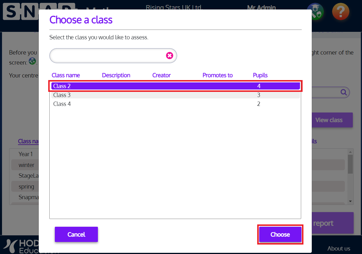 - Under the 'Choose' tab, click the Pupils, Classes, or Groups header.