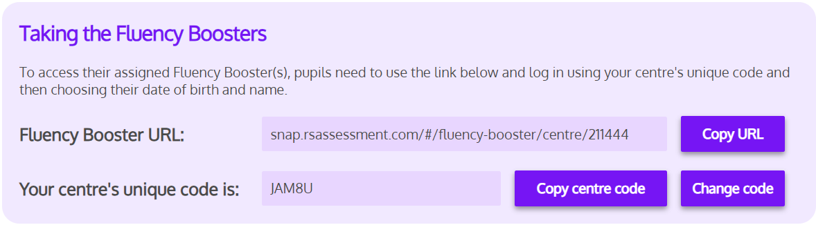 Once a pupil has completed a session they will not be able to access their Fluency Booster again for five hours. This is because the Fluency Boosters are meant be done a few days a week as part of regular practice sessions and should not be completed all at once.