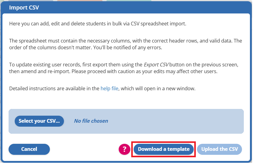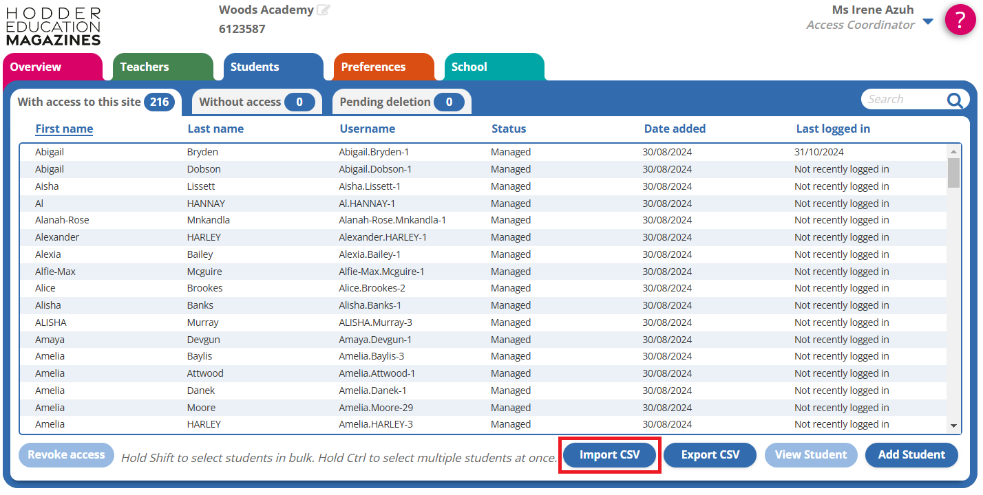 - Return to Students > With Access in the Admin Hub and select Import CSV again.