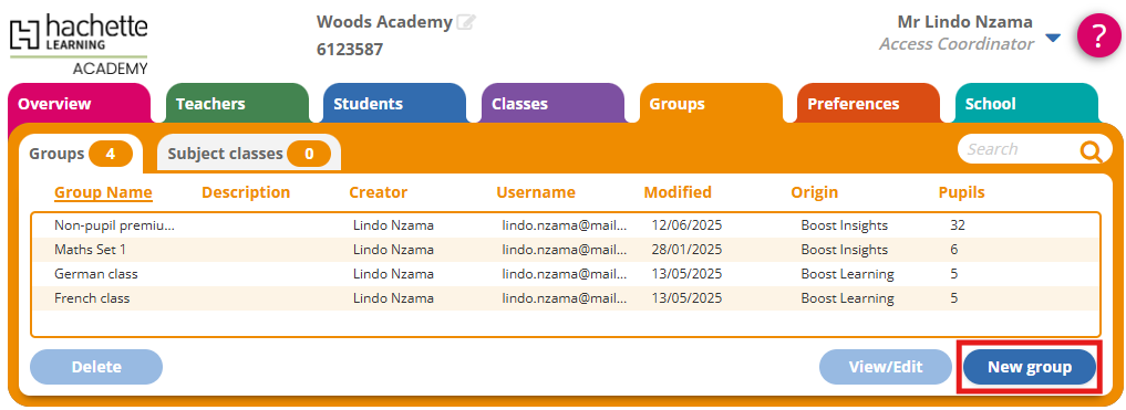 Before you can add CPD learners to Hachette Learning Academy, you must create a class for them. They can only belong to one class a time, but you can group them in other ways using custom groups. There is no limit to the number of custom groups they can belong to.