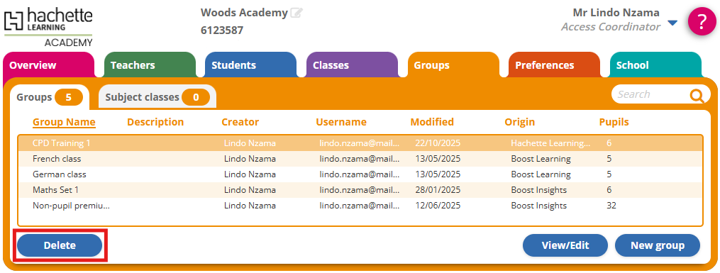 Please note that Admin Hub changes can take up to 5 minutes to take effect in Hachette Learning Academy.