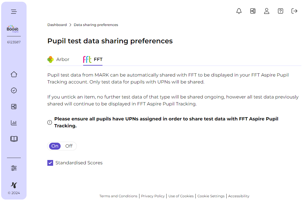 You can automatically export Key Stage 1 and 2 test data to FFT Aspire Pupil Tracking from Boost Insights. For more information about FFT Aspire Pupil Tracking, visit the FFT Aspire Help Centre.