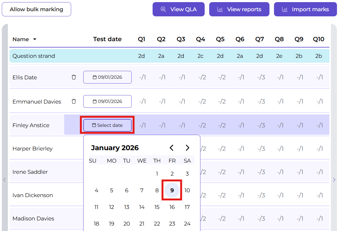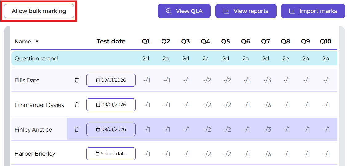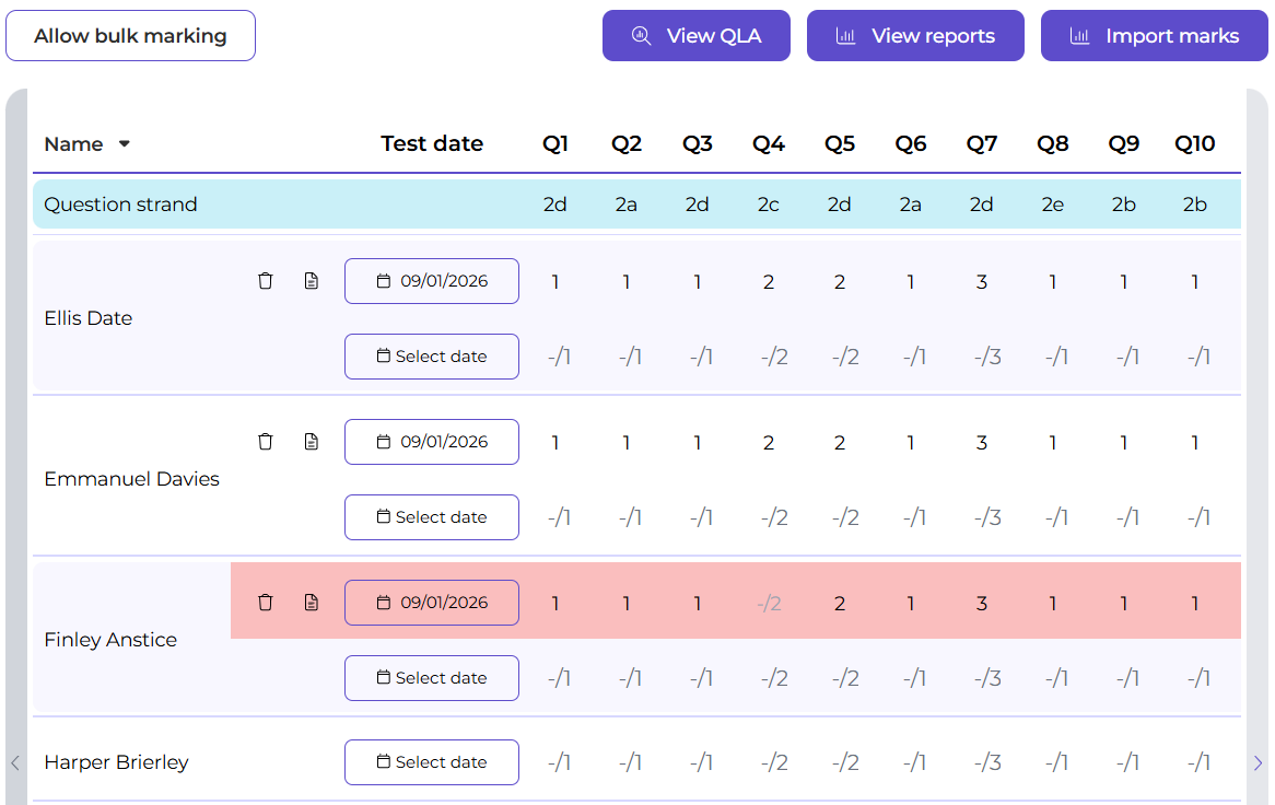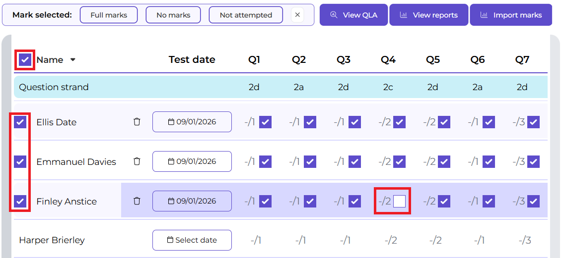 If you leave any marks unticked, the row will be highlighted in red to indicate that it's incomplete. Click the empty answer fields to enter the missing marks and click Save when you're done.