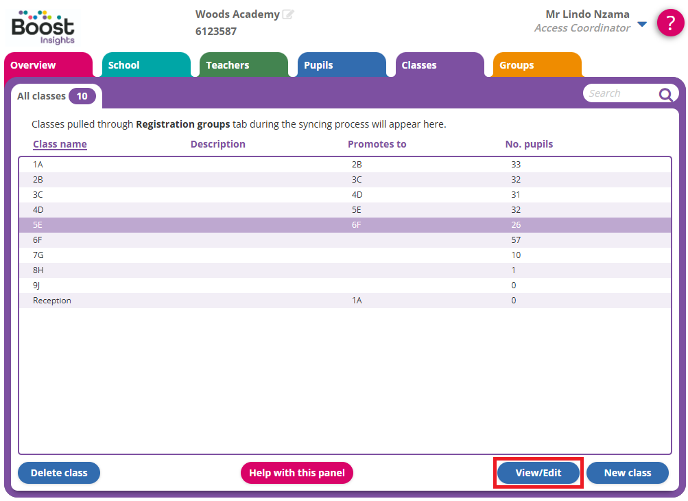 - Select a class and click View/edit in the bottom right.