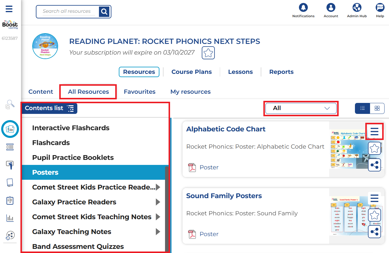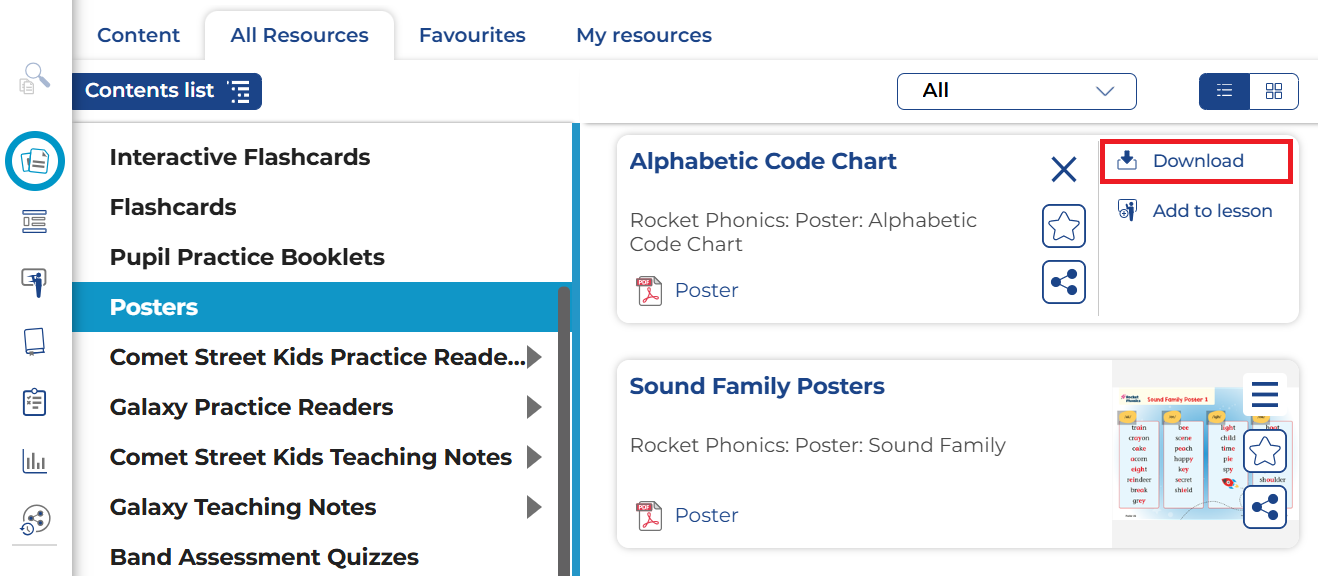 You can download and then print many of the resources included with your Reading Planet subscription, including posters, from the Course subscription page: