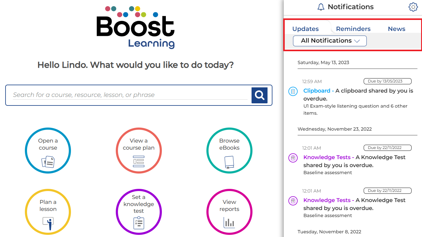 - News: news about Boost Learning or the Boost Courses you're subscribed to.
