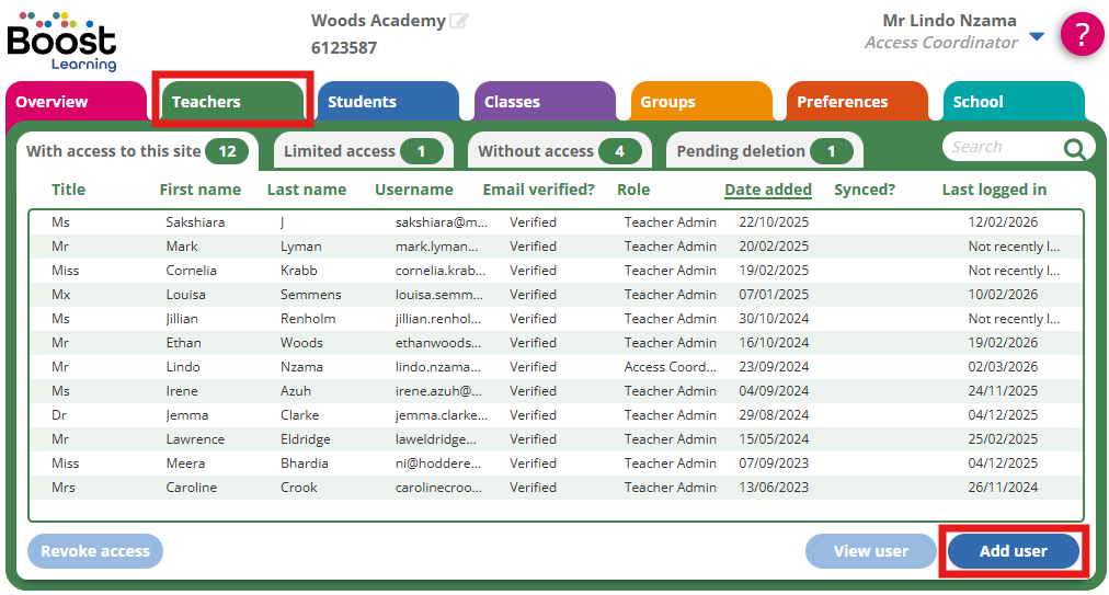 - Go to Teachers > With access.