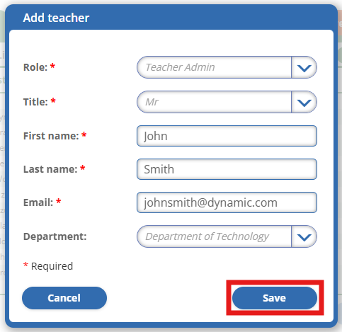 - Enter the teacher's details.
